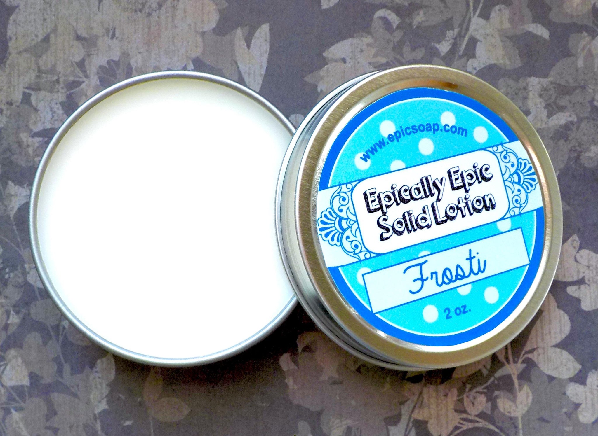 Listing is for one 2 oz. tin of solid lotion, measuring 2.5 inches in diameter by 3/4 in. deep.